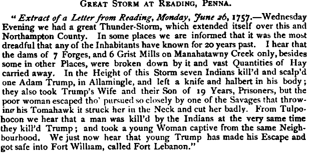 | Adam Trump is Ira's 5th Great-Grandfather on the Applegate side. There are two articles. There is a typo on this one--the year is 1757, not 1737. |